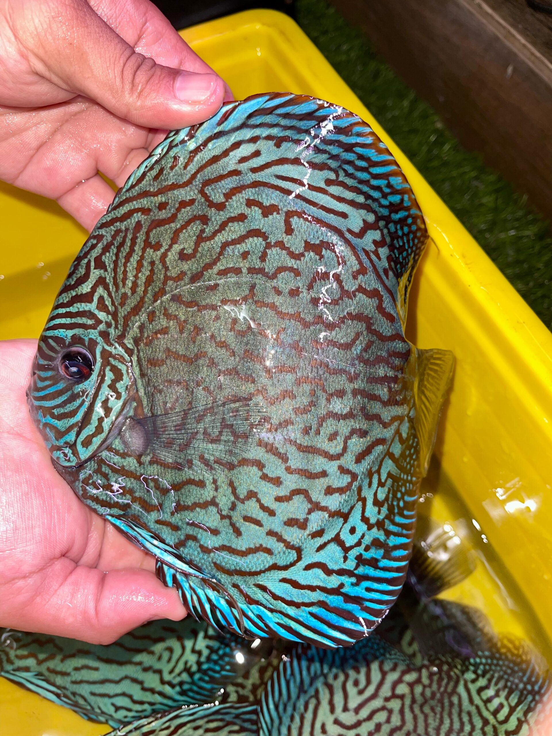We fix using a quick filter to represent the Discus’s real life colour; best as we are able to by eye. These photos are clearly marked as being edited in ‘PhotoRoom’.