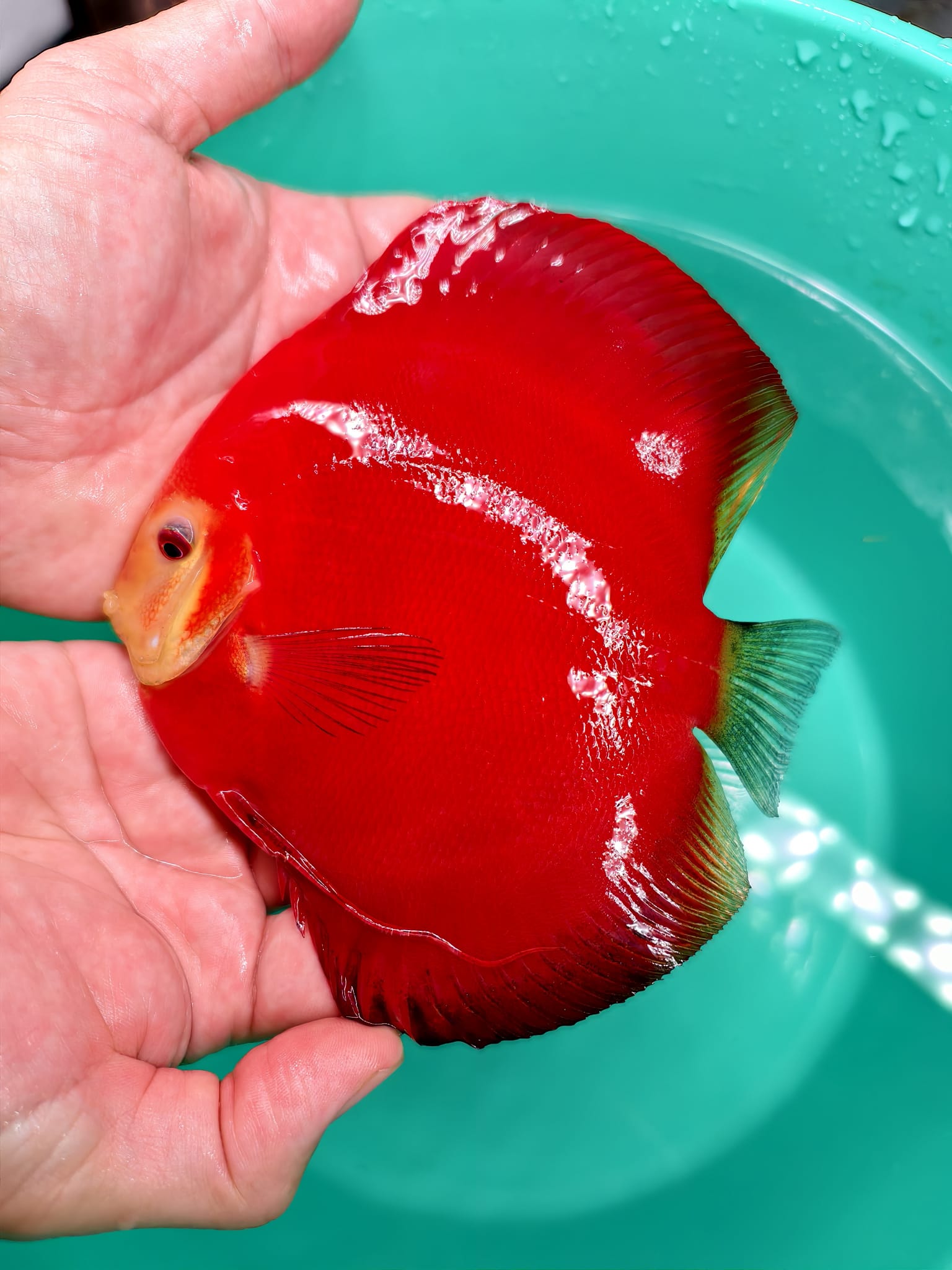 We fix using a quick filter to represent the Discus’s real life colour; best as we are able to by eye. These photos are clearly marked as being edited in ‘PhotoRoom’.