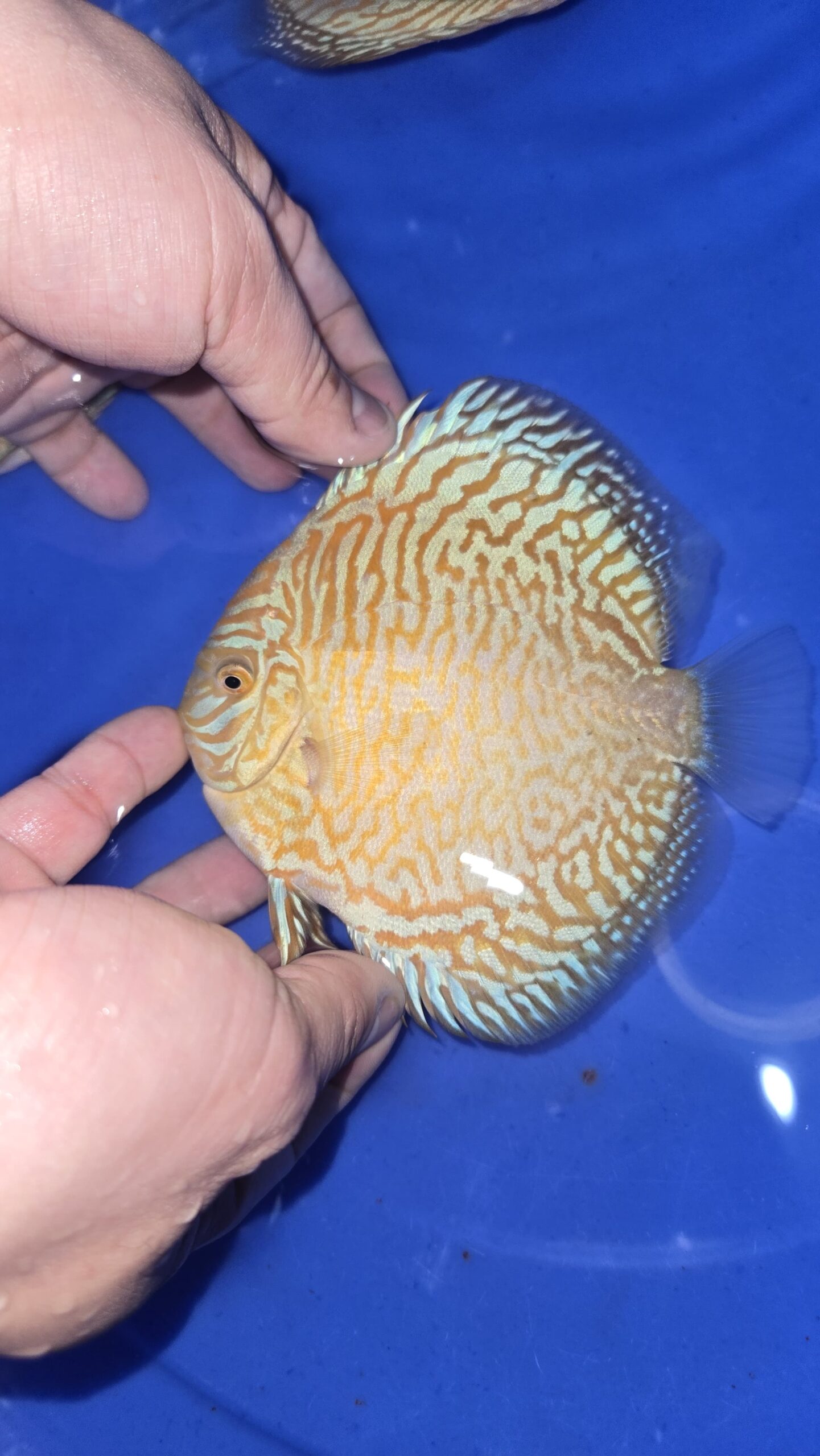 Discus fish (scientific name: Symphysodon) is a cichlid native to the Amazon Basin in South America. It’s a freshwater species with a unique shape: round and flat.